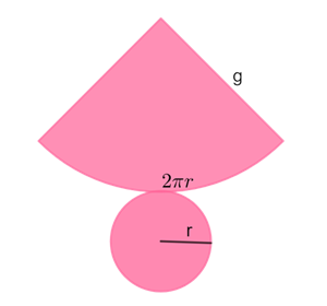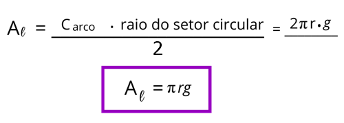 Para se calcular a área lateral (área do setor circular) é preciso saber a medida da geratriz g e do comprimento de seu arco, que coincide com o comprimento do círculo da base: