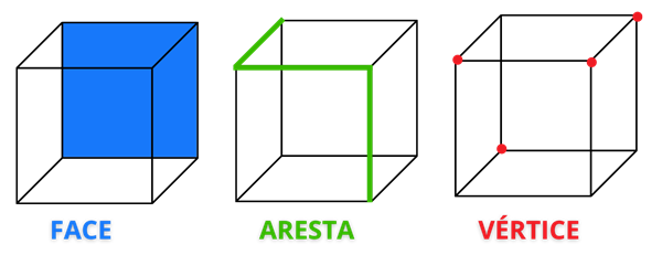Um cubo é composto por: Oito vértices, Doze arestas e seis faces Além disso,