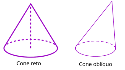 Quando o eixo é perpendicular à base, o cone é reto; caso contrário, o cone é oblíquo .