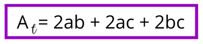 Como as faces do bloco retangular são compostas por retângulos , então a área da face é justamente a área do retângulo . Note que no bloco retangular as faces paralelas são congruentes . Observe que a área das faces 1 , 2 e 3 é dada , respectivamente , por . A = ac Aface 2 = ab A área total é dada por : . Aface 3 = bc A₁ = 2 Ace +2 Aface 2 + 2. Aface 3 face 1 Face 1 a Face 2 b C A₁ = 2ab + 2ac + 2bc Face 3