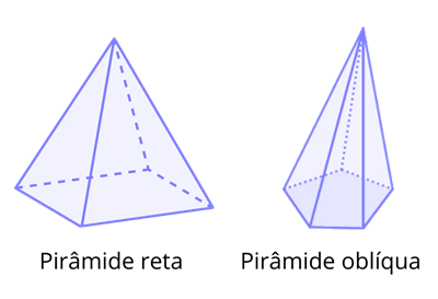 Quando suas faces laterais são triângulos isosceles, a pirâmide é reta; caso contrário, a pirâmide é oblíqua.