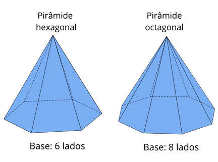 As pirâmides se diferenciam e são denominadas segundo o polígono da base: