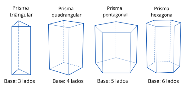 Os prismas se diferenciam e são denominados segundo o polígono da base: