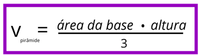 O volume da pirâmide é calculado pelo produto entre a área da base e a altura dividido por três. A base pode ser formada por qualquer polígono. O volume da pirâmide é calculado por meio do produto entre a área da base e a altura dividido por três.